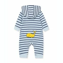 Flash Sale 😍 Little Me® Whale Hooded Romper In Blue Stripe 💯
