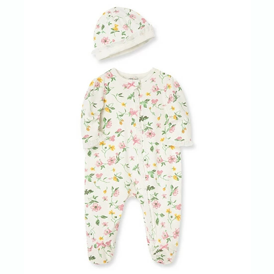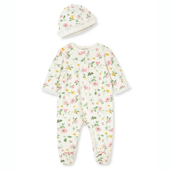 Deals ๐งจ Little Me® 2-Piece Floral Leaf Footie And Hat Set โค๏ธ