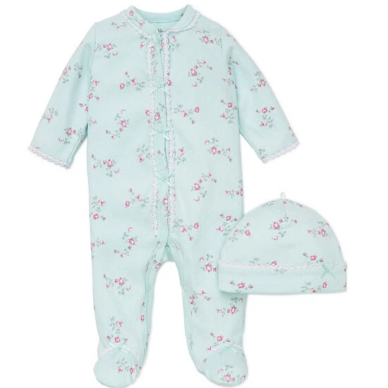 Flash Sale ๐งจ Little Me® 2-Piece Floral Spray Footie And Hat Set In Aqua ๐ฏ
