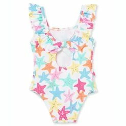Best Sale ✔️ Little Me® Starfish Ruffled 🩱 Swimsuit In White/Multi 🤩