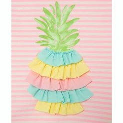 - Long sleeve rash guard top with stripe and polka dot print plus pineapple applique with ruffle accents