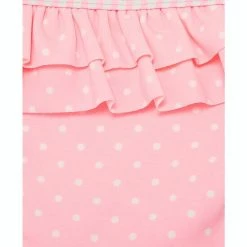 - Matching bikini bottom with polka dot print, ruffle detailing, plus elastic waist and leg holes