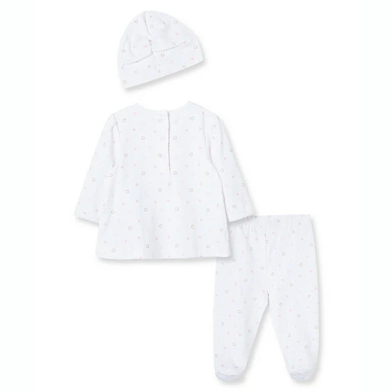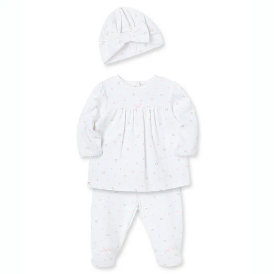 Outlet ๐งจ Little Me® 3-Piece Hearts Tunic, Footed Pant, And Cap Set In Pink ๐