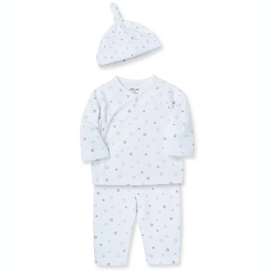 Best Sale โ Little Me® 3-Piece Stars Organic Cotton ๐ Shirt, Pant, And Hat Set In White ๐
