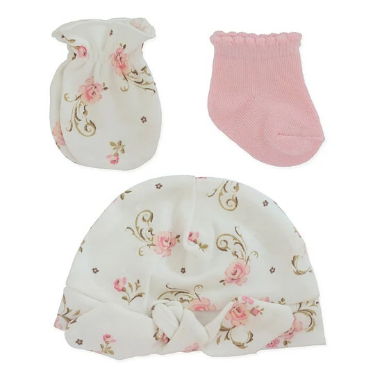 Budget ✨ Little Me® 3-Piece Vintage Rose Bootie, Mitt, And Cap Set In Pink/White ❤️