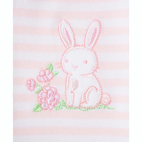 - Striped long sleeve top with applique of pink rises and a cute bunny
