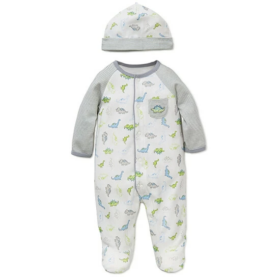 - Your little one will be ready for any adventure wearing this adorable 2-Piece Tiny Dinos Footie and Hat Set from Little Me
