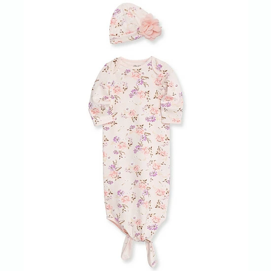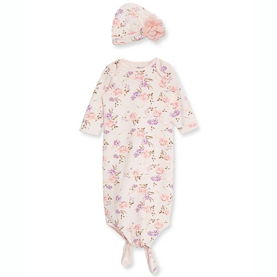 Hot Sale โค๏ธ Little Me® Size 0-3M 2-Piece Meadow Knotted Gown And Hat Set In Pink ๐