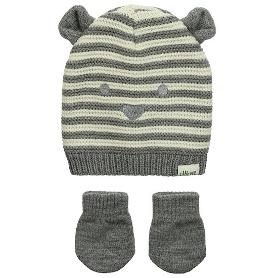 Best Pirce ๐ Little Me® Size 3-9M 2-Piece Knit Bear Face Hat And Mitten Set In Light Grey โค๏ธ