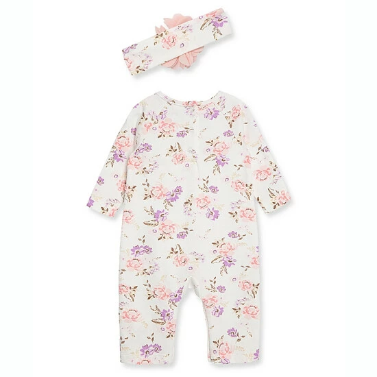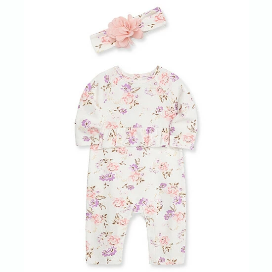 Promo 😉 Little Me™ 2-Piece Blossoms Jumpsuit With Headband Set In Pink 👍